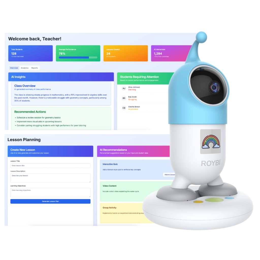 ROYBI Robot comes loaded with thousands of lessons and works with our Content Management System, so teachers can easily add their own content.